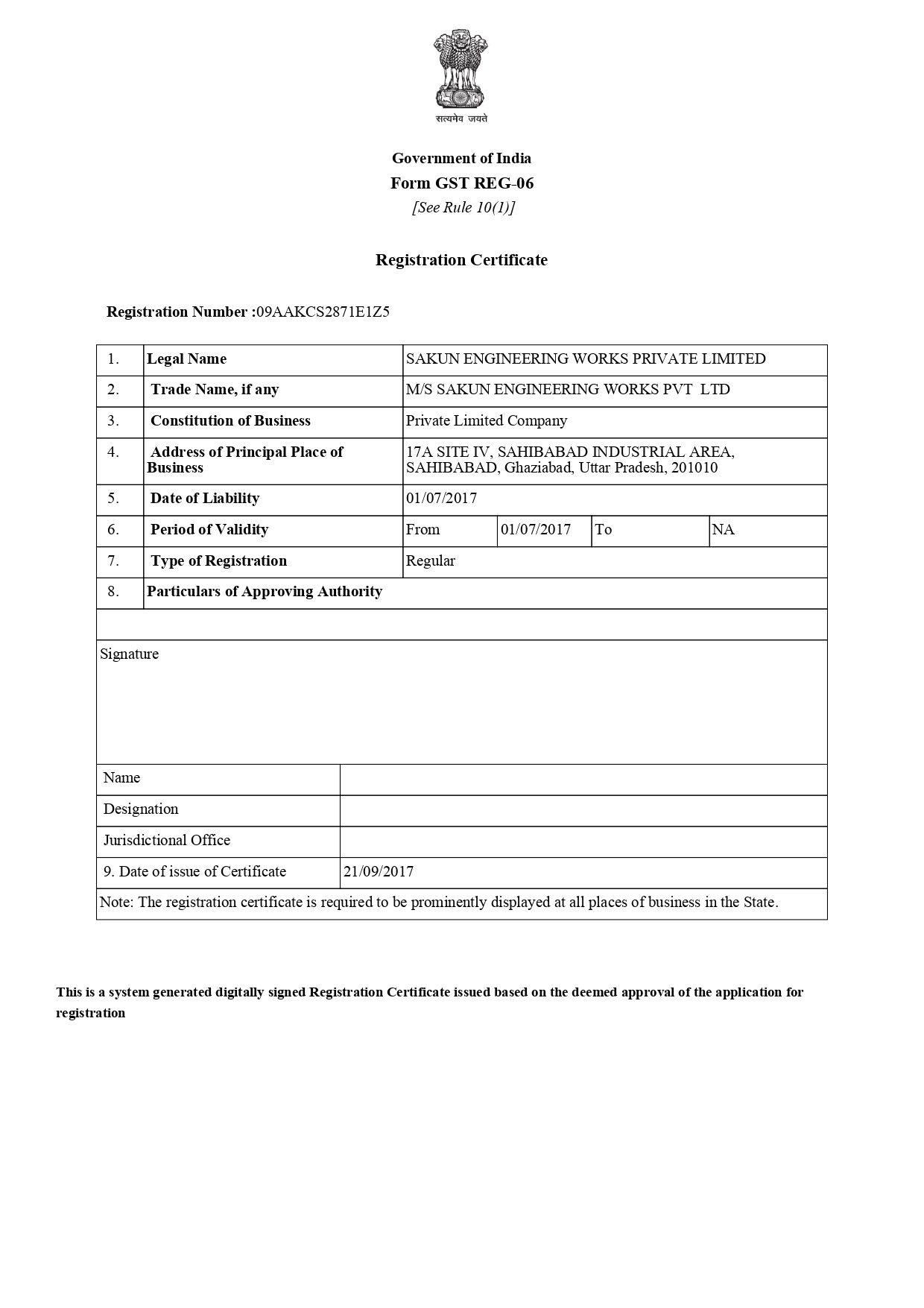 GSTIN : 09AAKCS2871E1Z5 Registered for transparent and compliant taxation.